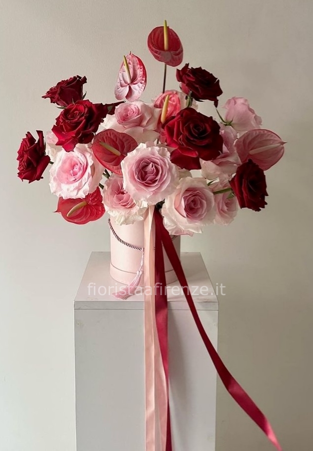 Flowers box rose rosse, rosa