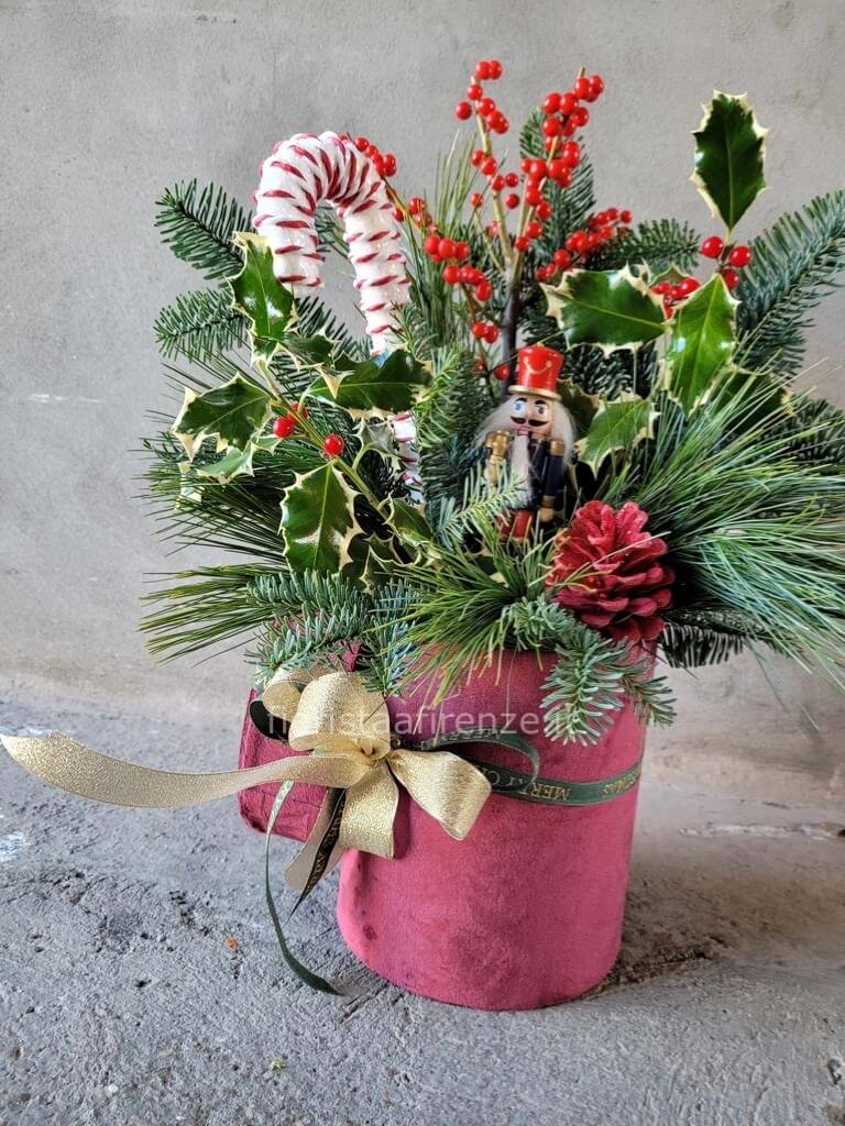 Flowers box in velluto con fiori natalizi.